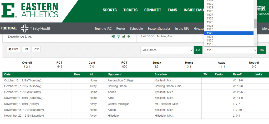 SMS added all of the archive schedules/results to provide a complete history on the web site. This resulted in EMU being able to have the all-time history links updated as well as every year of schedule/result available on the drop-down menu.