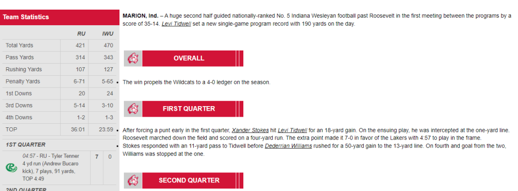 SMS authored numerous game stories in the style chosen by IWU so their athletic communications staff could simply copy/paste to their web site.